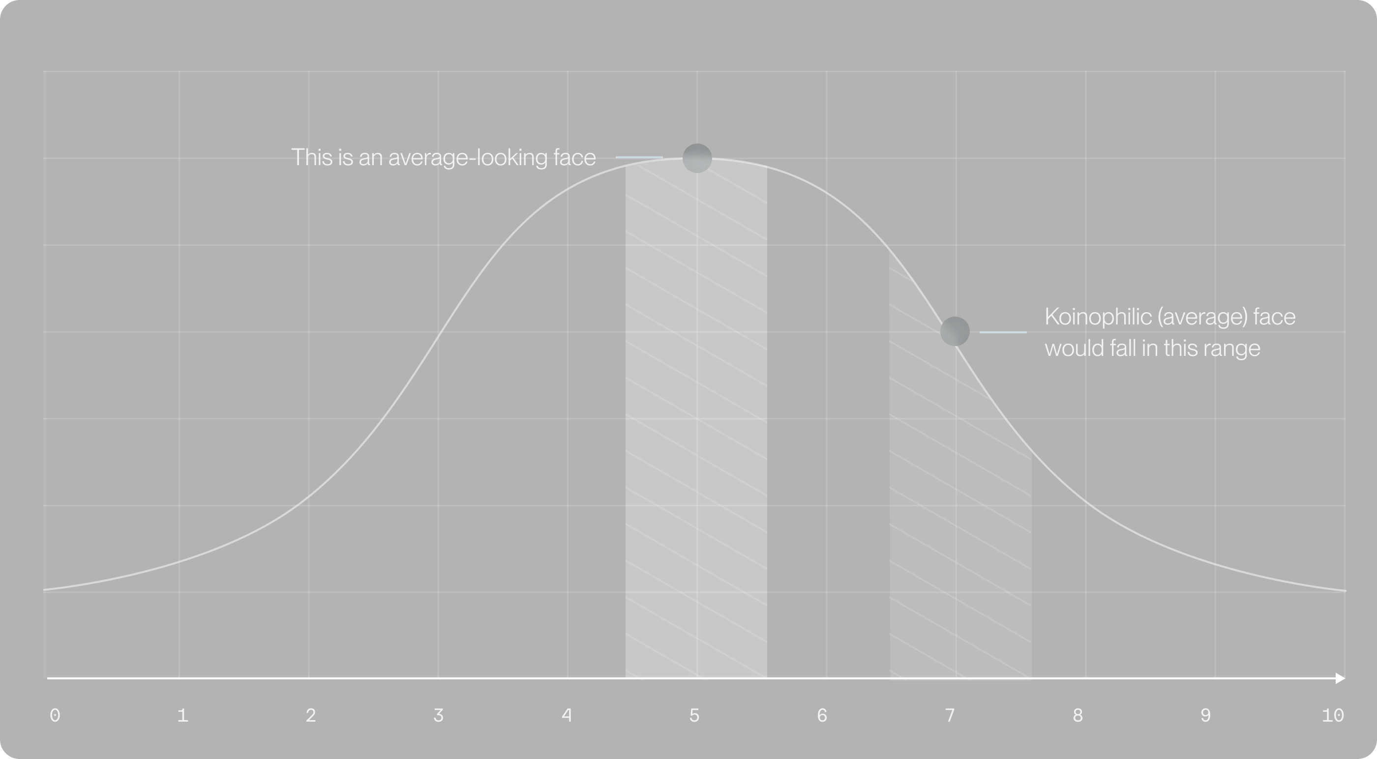 A koiniphilic face is more attractive than most. A 1990 study by Langlois and Roggman found that only ~20% of individual faces were rated as more attractive than an averaged koinophilic face.